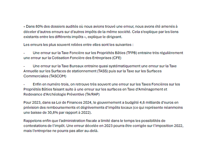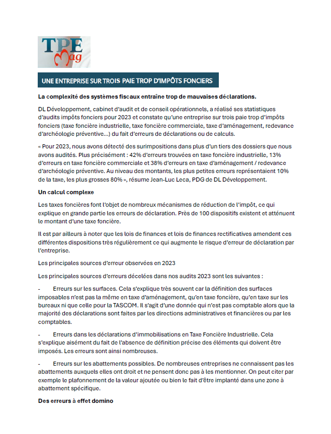 Parution TPE MAG : Une entreprise sur trois paie trop d’impôts fonciers
